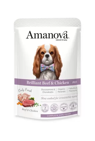 Во вкусна комбинација на свежо месо и говедско месо, оваа храна за кучиња без житарки има целосен нутритивен профил и со љубов е направена во нашите кујни според нашиот посебен рецепт.