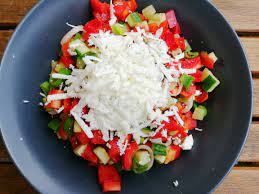 (домат, краставица, кромид, сирење, маслинки, оригано) |